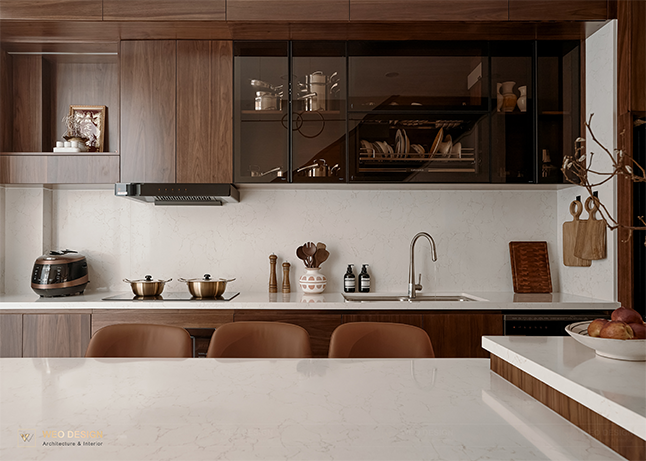 Vì vậy, giải pháp thông minh không nằm ở “dùng thật nhiều gỗ óc chó”, mà nằm ở dùng đúng vị trí cần thể hiện giá trị của gỗ.