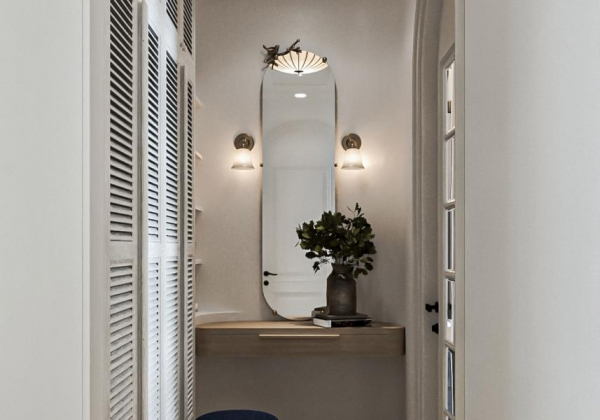 Nổi bật với tông màu trắng – xanh kết hợp hài hòa tạo nên không gian đậm vị biển phóng khoáng và tự do, thiết kế đặc biệt tận dụng tối đa ánh sáng tự nhiên giúp căn hộ luôn ngập tràn sinh khí. Vẻ đẹp của nắng gió đan xen trong không gian sống khiến ngôi nhà như một resort thu nhỏ giữa lòng thành phố.