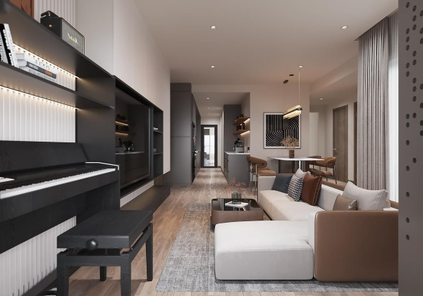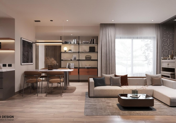 Bước vào không gian, gia chủ sẽ cảm nhận rõ dòng chảy đương đại cuộn trào trong các gam màu trung tính hài hòa, đường nét tinh gọn cùng các chất liệu quen thuộc. Các chi tiết nội thất vừa là điểm nhấn, vừa giúp mở rộng không gian và tận dụng ưu điểm của phong cách hiện đại.