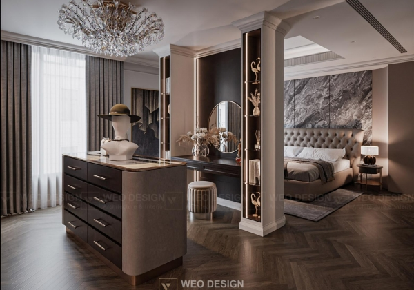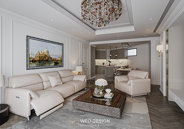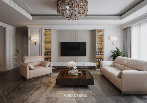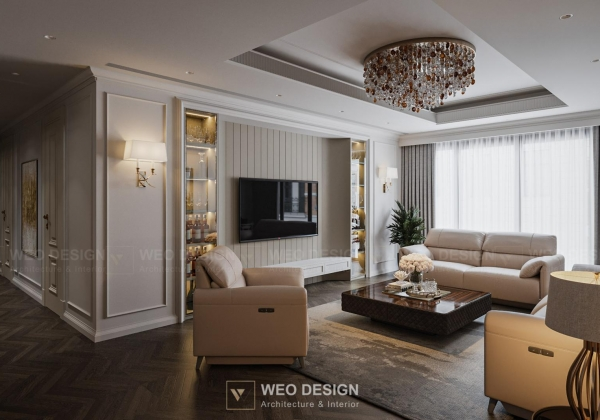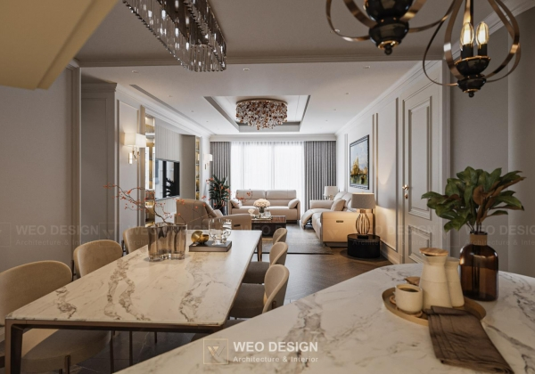 Không làm cho con người ta choáng ngợp từ cái nhìn đầu tiên, phong cách tân cổ điển khiến cho mỗi một vị khách bước vào không gian chậm rãi cảm nhận được sự hòa âm của tất cả các chi tiết, dù là nhỏ nhất. Sự sang trọng, thanh tao, điểm nhấn nhẹ nhàng từ các mặt phẳng, đường cong, màu sắc hay sự cân xứng đến kinh ngạc của các mảng, các khu chính là điều làm nên sức quyến rũ riêng cho phong cách này.
