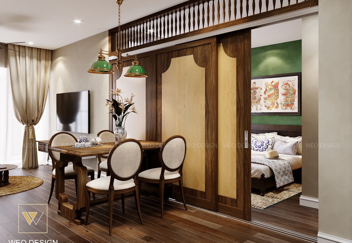 Phong cách Indochine thường dành cho những gia chủ yêu thích vẻ đẹp hoài cổ của văn hóa phương Đông pha trộn với nét lãng mạn của nước Pháp. Gam màu được sử dụng cho các thiết kế căn hộ phong cách Indochine thường là những gam màu trung tính như trắng, vàng, be, xanh lá cây, nâu… Các đường nét trong phong cách này giúp không gian trở nên sang trọng, đẳng cấp, khó rời mắt lại vừa gần gũi, ấm áp.