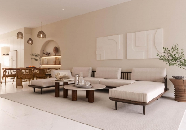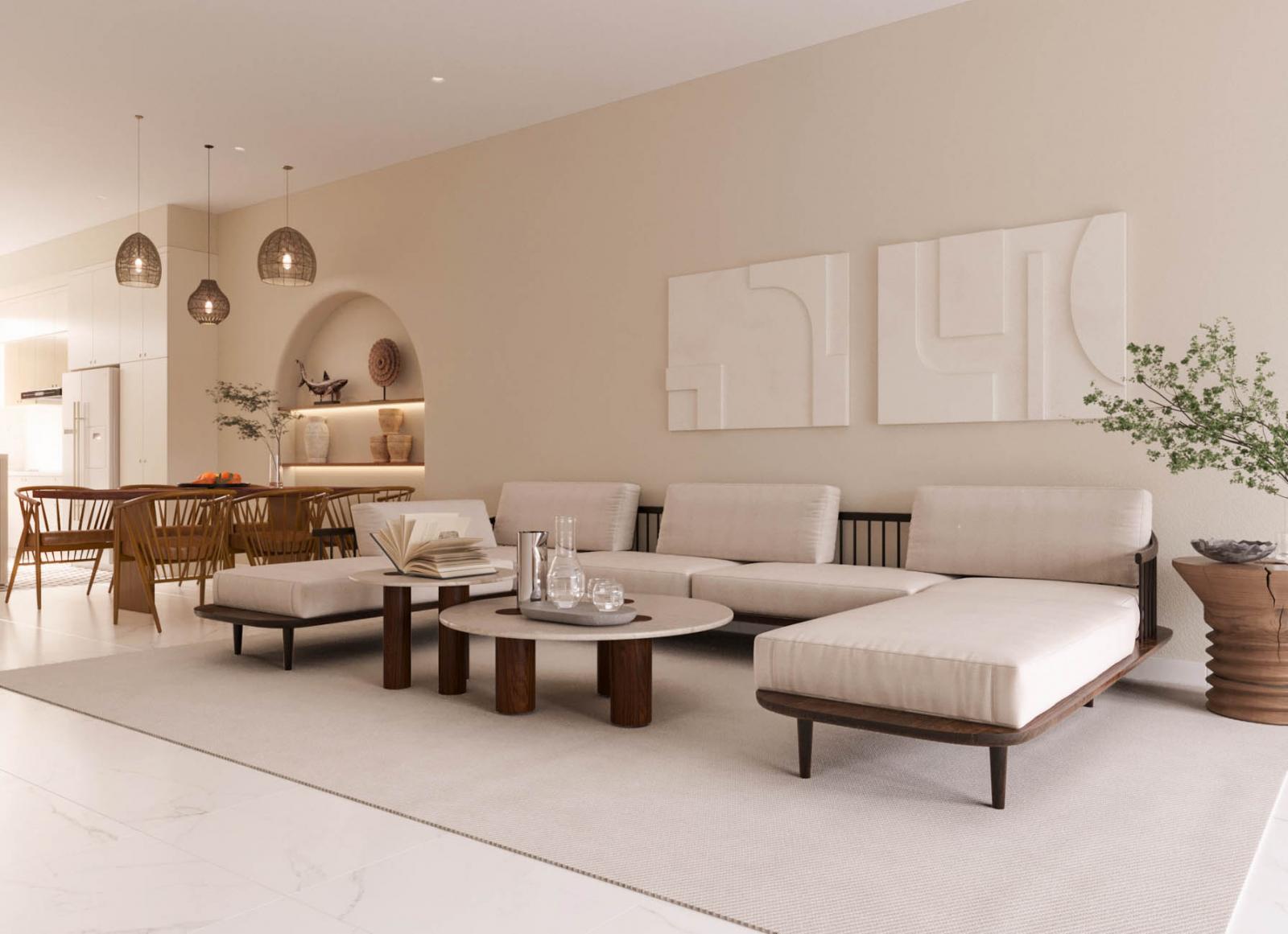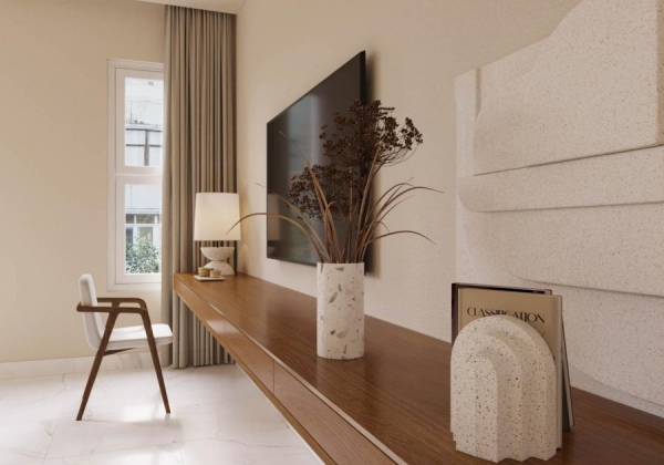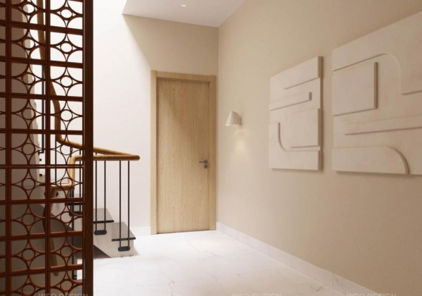 Tinh tế và hài hòa, đây là những tính từ để miêu tả cho sự kết hợp độc đáo trong thiết kế của căn nhà phố. Một sự pha trộn giữa phong cách Japandi tinh tế, trang nhã và một chút mộc mạc, gần gũi của phong cách Wabisabi. Đặc biệt, vẻ đẹp nguyên sơ từ chất liệu tới màu sắc càng được tôn lên trong không gian tràn ngập ánh nắng tự nhiên, thổi bừng sức sống mới cùng nguồn năng lượng vô hạn.