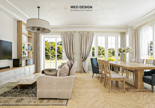 Một trong những điều quan trọng nhất trong thiết kế phòng khách theo phong cách địa trung hải là việc tạo ra một bố cục mở. Không gian thông thoáng giúp ánh sáng tự nhiên dễ dàng đi vào, đồng thời tạo cảm giác rộng rãi hơn. Bạn có thể lựa chọn những bộ bàn ghế lớn với thiết kế đơn giản và thoải mái.
