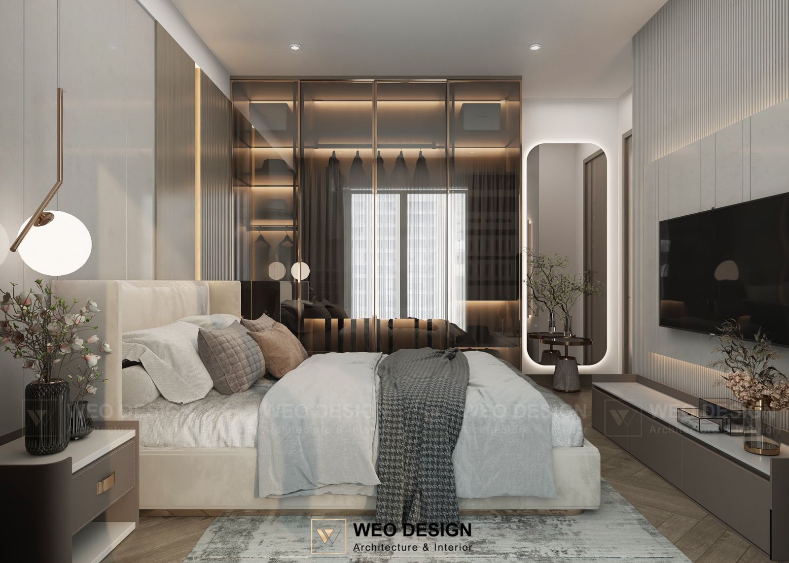 Phòng ngủ là nơi nghỉ ngơi, thư giãn sau những giờ làm việc căng thẳng, do đó cần được thiết kế sao cho thoải mái và ấm cúng. Một mẫu thiết kế phòng ngủ hiện đại thường sẽ bao gồm giường ngủ lớn, tủ quần áo và bàn trang điểm, tất cả đều được bài trí hợp lý, tạo không gian thoáng đãng.